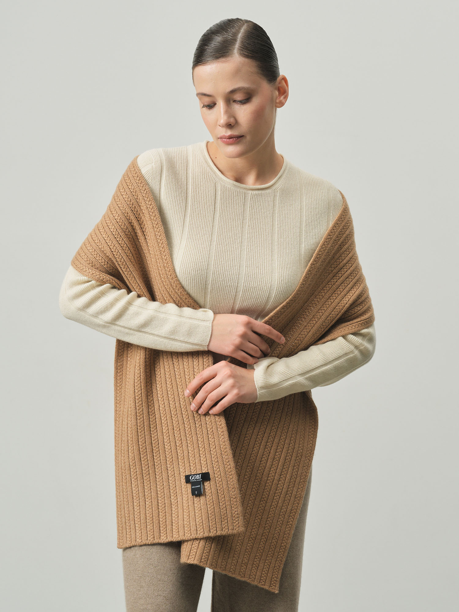 Шарф из кашемира KA211297-F кэмел