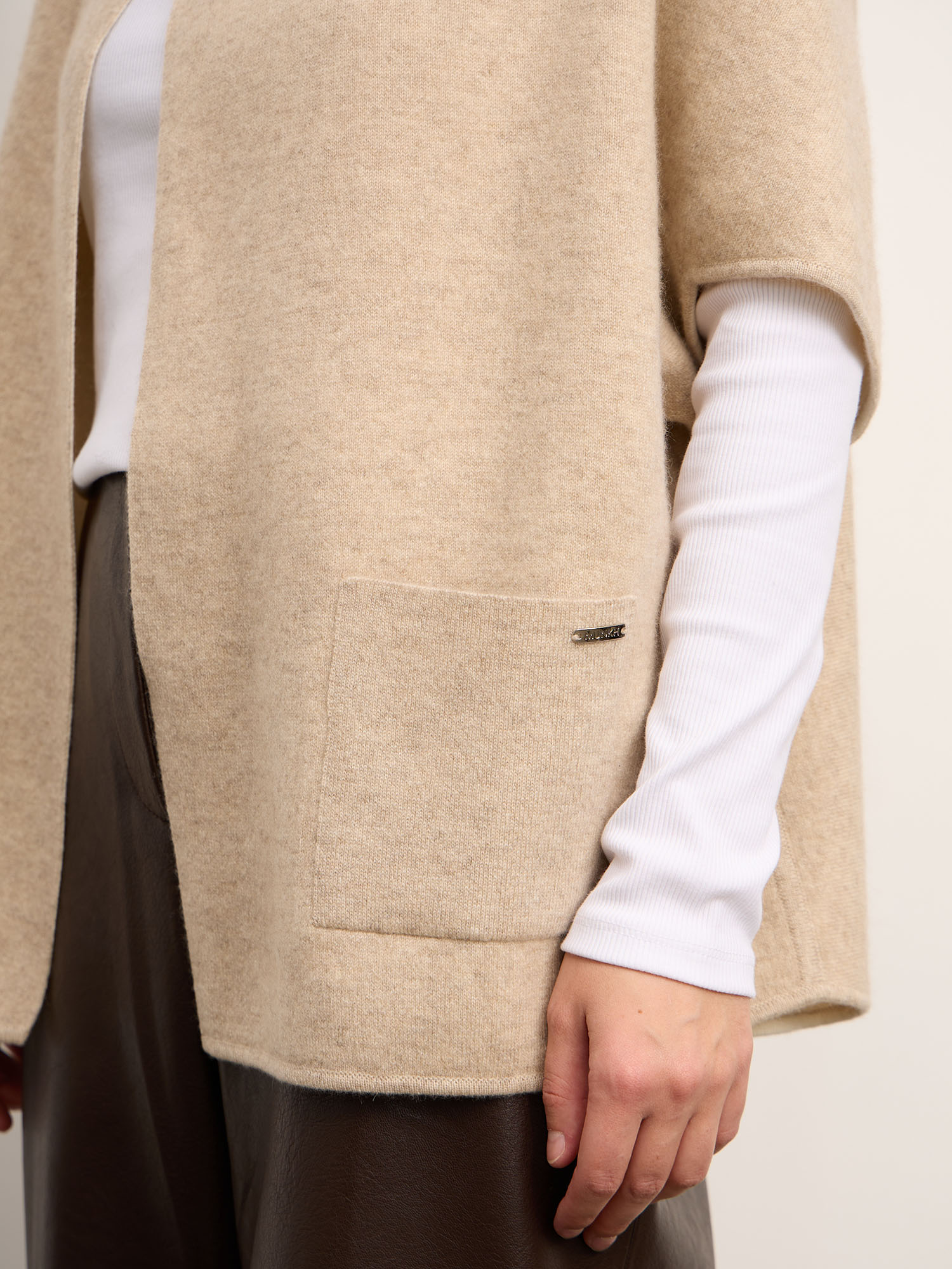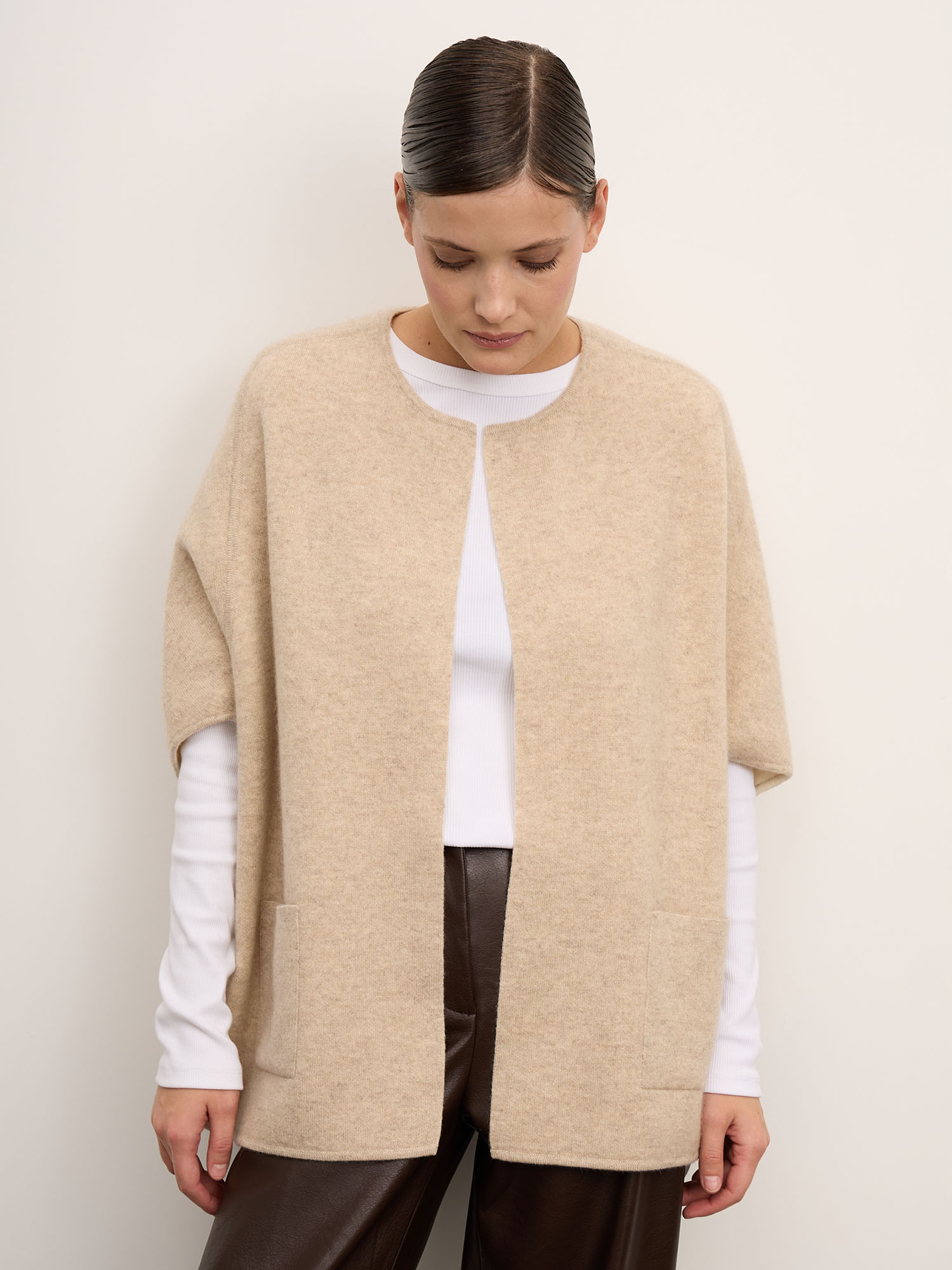 Свободный крой без застёжек, прямые линии, минималистичный стиль. Пончо удобно надевать поверх водолазок, джемперов и рубашек.