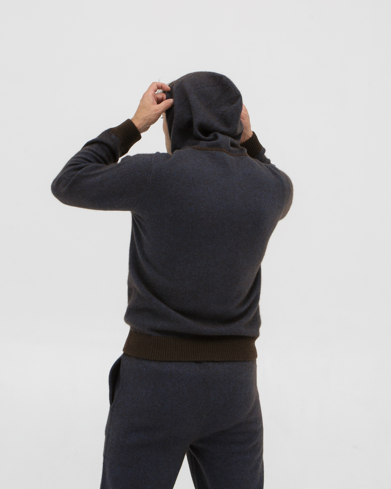 Джемпер из пуха яка и верблюда с капюшоном 4179 синий