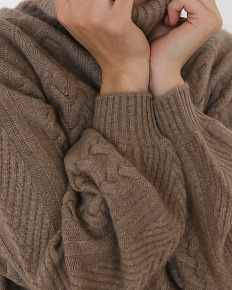 Непринужденный силуэт и изящная фактура вязки формируют элегантный внешний вид при максимальном комфорте носки. Благородный тон капучино служит идеальной основой для создания гармоничных цветовых сочетаний в различных стилистических направлениях. Свитер подходит как для формирования повседневных, так и более торжественных образов.