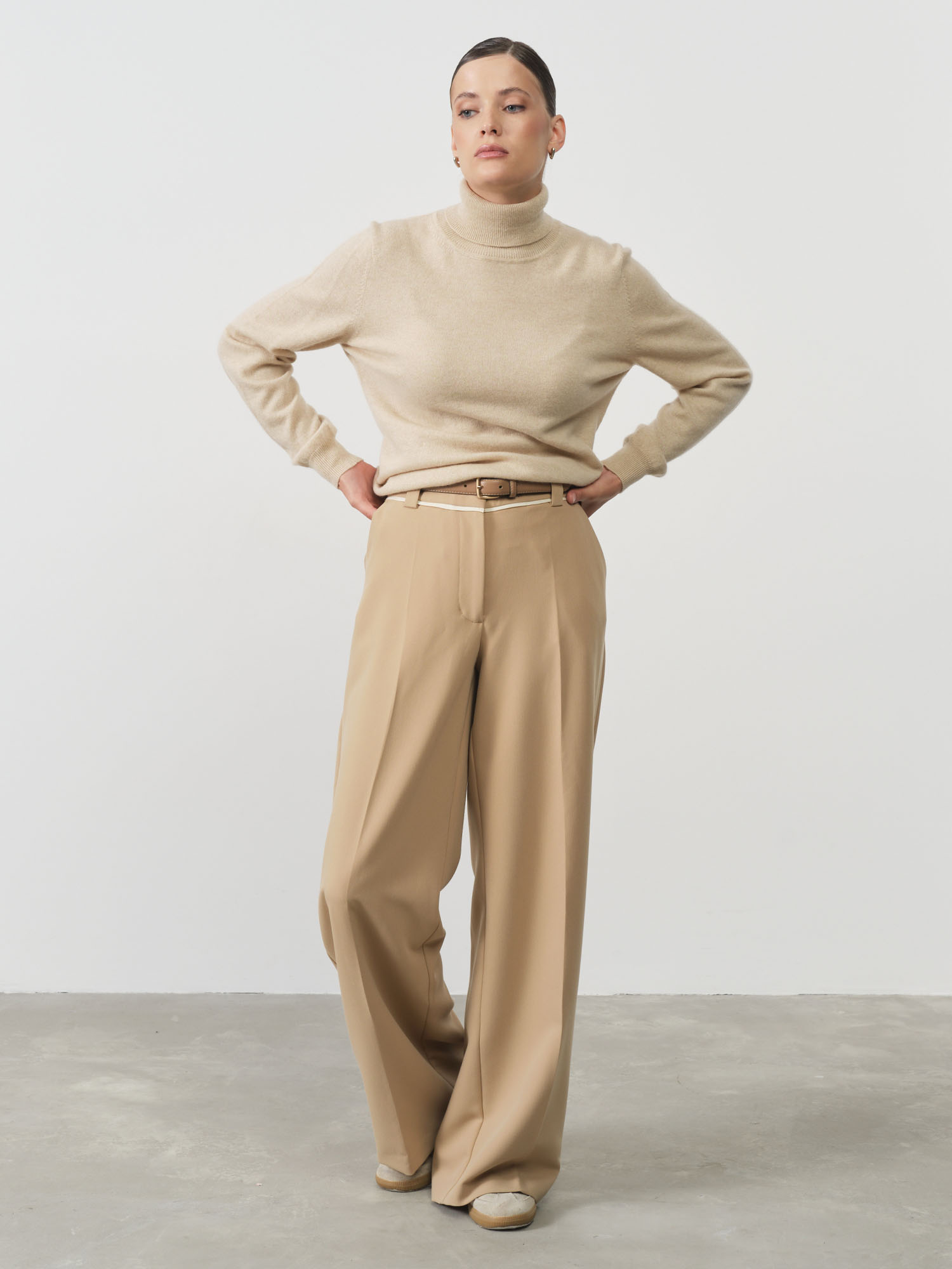Классический прямой силуэт обеспечивает комфортную посадку и свободу движений. Мягкий кашемир приятно прилегает к коже и создаёт ощущение лёгкости и уюта.