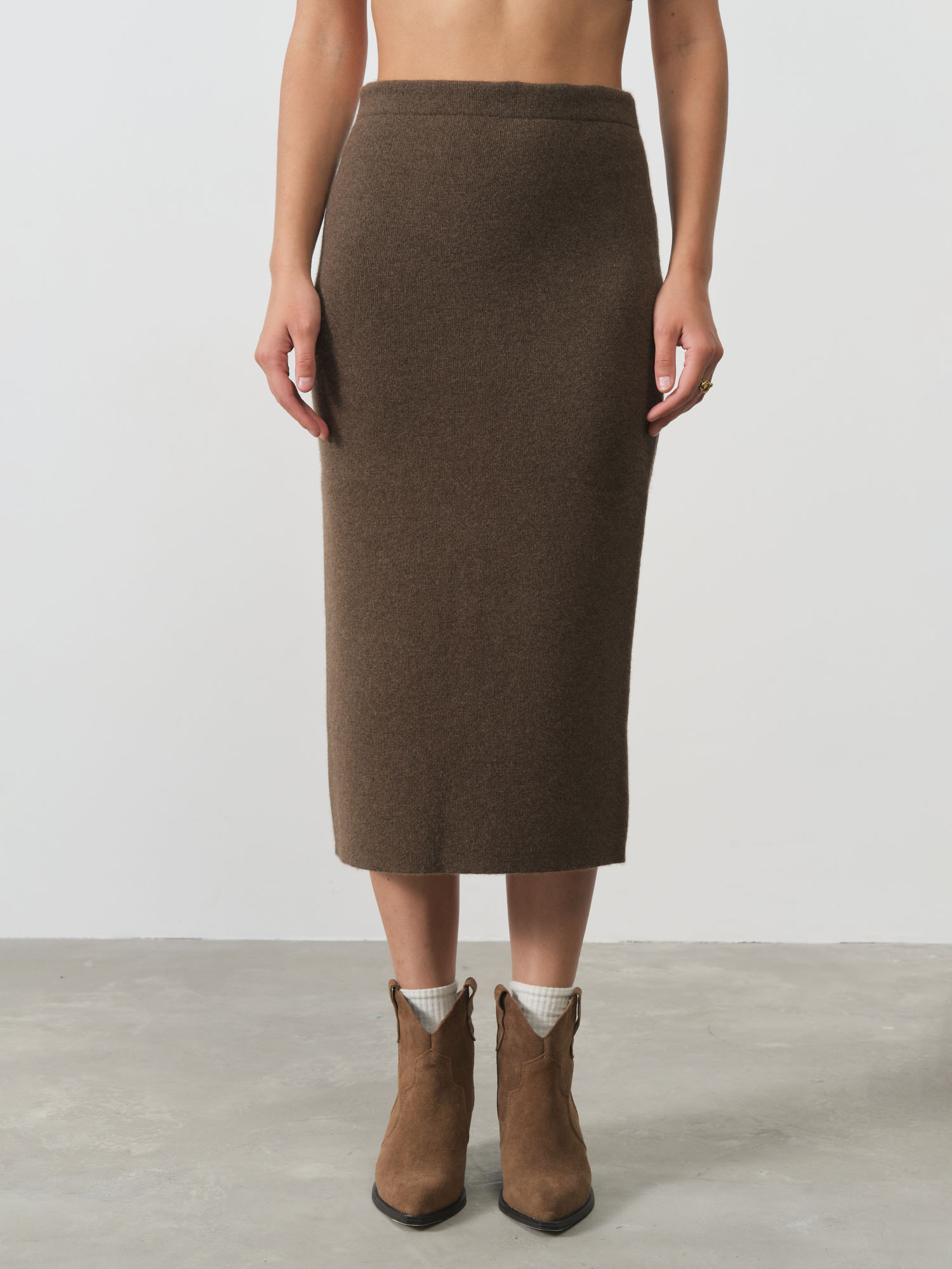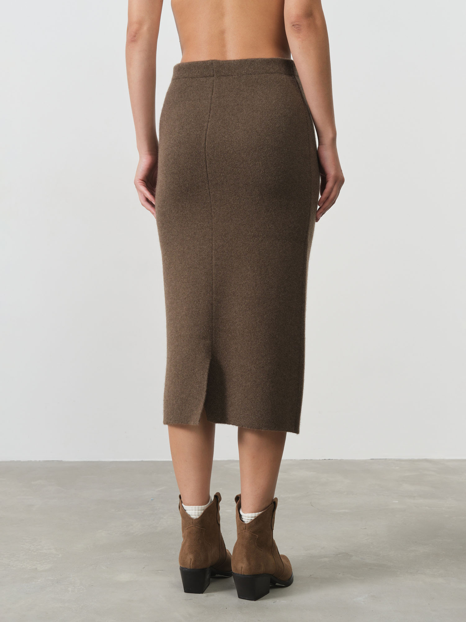 Эластичный пояс для комфортной посадки, аккуратная трикотажная вязка и разрез сзади для свободы движений. Плотная структура полотна помогает сохранять форму изделия.