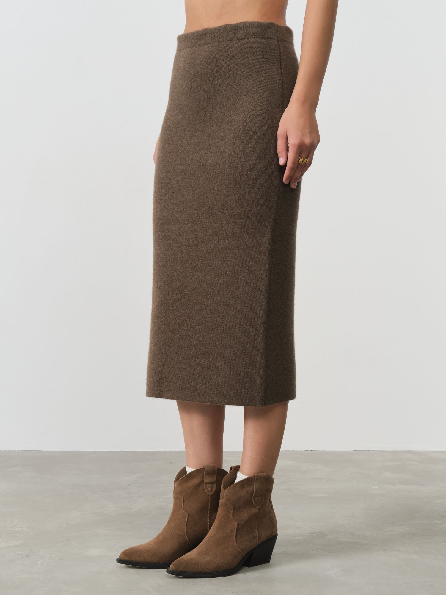 Юбка из пуха яка — элегантная и женственная модель, подчёркивающая силуэт и обеспечивающая комфорт в холодное время года. Лаконичный дизайн делает её универсальной основой гардероба.